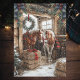 Celebrate the holidays with this unique and heartwarming design. A stunning watercolor illustration shows two beautiful horses wrapped in traditional red and green tartan plaid in a festive winter barn scene. Solid dark blue on back with customizable holiday message and signature. A blend of equestrian grace and classic Christmas style, it's the perfect way to send warm, homespun holiday wishes to friends and family. Ideal for horse lovers and anyone who cherishes a rustic, winter wonderland aesthetic.