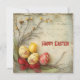 Tarjeta Festiva Huevos de Pascua rojos y amarillos retro en acuare