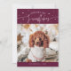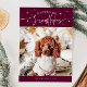 Tarjeta de plantilla de fotos de vacaciones para Navidades amables y divertidos para dueños de perros con un texto de tipografía que dice "pulseras y copos de nieve" con una foto de tu perro. El fondo es arándano.