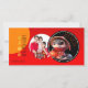 Una serpiente pequeña que usa telas chinas al estilo personalizado (modelo n°2) parece iluminarse con su pequeña linterna tradicional en una ventana redonda para Tu foto en un fondo rojo. Diseño en tarjeta de saludo rectangular horizontal con la misma serpiente bebé + burbuja de habla con saludo en la parte posterior de la tarjeta. Coincidiendo con la tarjeta de saludo y más pronto...