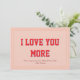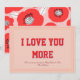 Share a timeless message of love with this “I Love You More” Valentine featuring bold typography on the front and a charming floral patterned back for added visual interest. Designed as a flat Valentine’s greeting, this modern yet romantic style blends clean layout with playful color and botanical detail, making it perfect for partners, spouses, or anyone who appreciates thoughtful design.