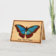 Un ilustracion vintage, alrededor de 1750, de una mariposa sudamericana roja y azul. Añade tu propio texto.