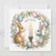 Tarjeta Festiva Ilustracion de Velas Azules Pink Bunny de Pascua