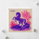 Un vívido caballo zodiacal púrpura que se eleva en movimiento entre plantas magenta brillantes, simbolizando renovación, fortuna y fuerza para el Año del Caballo 2026.