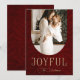 Tarjeta navideña de fotografía joyosa del arco botánico moderno de oro rojo