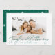 Envíe elegantes saludos de vacaciones este año con nuestra tarjeta fotográfica de vacaciones Jingle All The Way! La moderna tarjeta de vacaciones incluye "Jingle All The Way" en un moderno guión verde. Personalice la parte delantera de la tarjeta agregando su foto y nombre(s). La simple tarjeta de vacaciones se transforma en un diseño de copos de nieve verde y blanco.
