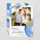 Tarjeta de vacaciones de Janucá con Foto de Acuarela Azul Abstracta Moderna