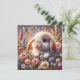 Tarjeta Festiva Jardín de flores rosadas lindo conejo bebé Pascua