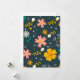 Un vibrante y caprichoso patrón floral sobre un fondo azul marino intenso, que presenta alegres flores amarillas, rosadas suaves y blancas brillantes con delicadas hojas verdes. La mezcla de flores tipo margarita y flores estilizadas crea una estética juguetona y animada, perfecta para evocar el encanto de un jardín primaveral en flor. El fuerte contraste de color hace que cada detalle floral resalte, lo que le da al diseño un aspecto alegre, decorativo y llamativo adecuado para uso culinario o de manualidades.