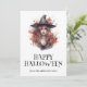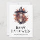 Tarjeta de color de agua de Halloween que muestra a una joven bruja de cabello rojo en un gorra. Personalice fácilmente esta tarjeta personalizado de Halloween con su nombre y texto familiar.