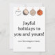 Joy filled holiday card with basketball, golf ball, volleyball and baseball.