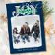 Tarjeta Festiva JOY Blue Modern Bold Script Simple Photo Navidades