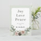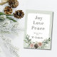 Tarjeta Festiva Joy Love Peace Christmas Roses Pine Cone