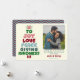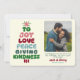 Alegría la paz dando y la amabilidad - maravillosos sentimientos inspiradores para saludos de vacaciones. Letrero moderno retro pusilánime en forma de árbol con una estrella brillante encima. Los colores vintage de la Navidad incluyen tonos rojos, verdes, azules y rosas para una distintiva tarjeta fotográfica personalizada de vacaciones. Esta tarjeta horizontal incluye una foto. Puede personalizar el mensaje, los nombres y la línea adicional para más nombres o cualquier otra cosa que desee agregar. La parte posterior de esta tarjeta presenta un diseño ondulado en la misma combinación de colores que la parte delantera de la tarjeta. La etiqueta de dirección de devolución de estrella ondulada coincidente está disponible.