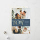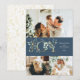 Tarjeta de vacaciones elegante con 3 fotos y un aspecto limpio y moderno, con gráficos de oro y vegetación, y un patrón dorado botánico de invierno en el reverso.