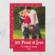 Tarjeta Festiva Joy Peace and Love Red Brushed Script Photo