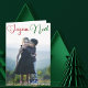 Elegante tarjeta de Navidad con foto doblada Joyeux Noël con hermosa tipografía cursiva en rojo y verde. Esta moderna tarjeta de Navidad con fotografía familiar francesa presenta una hermosa escritura y su nombre en blanco sobre la imagen vertical de las fiestas.