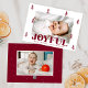 Festividad de la tarjeta de Navidades fotográficos con tu foto horizontal rodeada de pinos dibujados a mano con un fondo blanco. "Alegre" se muestra en negrita con letras en burdeos con el saludo de su personalizado y el nombre de su familia que se muestra a continuación. La alegre tarjeta de Navidades se revierte para mostrar una foto adicional y un fondo burdeos con sutiles puntos blancos.