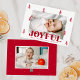 Festividad de la tarjeta de Navidades fotográficos con tu foto horizontal rodeada de pinos rojos dibujados a mano con un fondo negro. "Alegre" se muestra en letras rojas en negrita con el saludo de su personalizado y el nombre de la familia que se muestra a continuación. La alegre tarjeta de Navidades se revierte para mostrar una foto adicional y un fondo rojo con sutiles puntos blancos.