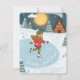 A charming winter landscape with a girl gracefully skating under the moonlight by a rustic cottage.