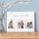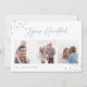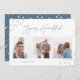 Envíe saludos de Hanukkah a amigos y familiares en estilo moda con nuestras elegantes tarjetas de fotos. Diseñada para acomodar tres de tus fotos favoritas dispuestas una al lado de la otra en formato collage, la tarjeta presenta "joyous Hanukkah" con letras de guiones dibujadas a mano y adornadas con estrellas dibujadas a mano en las esquinas. Personaliza con tu apellido y el año que está abajo.