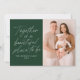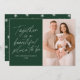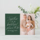 Tarjeta de Navidades de fotografía moderna con la frase "Juntos es un lugar hermoso para ser" mostrada en un guión escrito a mano en blanco con un fondo verde oscuro. Personalice la tarjeta de vacaciones simple con su apellido, año y foto vertical. La tarjeta se revierte a un patrón de copos de nieve verde y blanco.