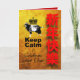 Popular "Keep calm" with a royal Goat + large vertical red greetings in Chinese onto a golden background (printed image n°2 of textured paper). Design on vertical greeting card with red background inside of the card. Perfect for Chinese New Year of the Goat, Ram or Sheep Year with an occidental accent.
