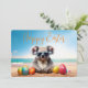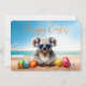 Tarjeta Festiva Koala en la playa con huevos de Pascua Feliz Pascu