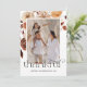 Esta tarjeta plana de doble cara de Acción de Gracias presenta tipografía moderna, follaje acuático de otoño y un collage de 3 fotos en la parte posterior. Inserta tus fotos favoritas, añade un toque personal con tu propio mensaje de corazón y personalizar a tu gusto. Fotos de prostooleh / Freepik.