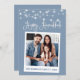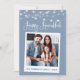 Guión moderno de caligrafía divertida, imagen de cámara instantánea Happy Hanukkah Card - Azul turbio con cadenas