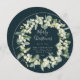 Una tarjeta de vacaciones redonda y plana con bayas de nieve pintadas a mano y tallos de eucalipto dispuestos en un hermoso cordón de Navidades con un fondo verde oscuro. Todo el texto es totalmente editable, por lo que puede cambiar fácilmente el mensaje/estilo/color/tamaño. La parte posterior está en blanco si desea agregar un mensaje más largo o un resumen anual - o intercambiar en una foto. Elementos de coordinación disponibles.