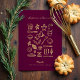 Hermosa receta única de horneado de vacaciones temática tarjeta de vacaciones. Nuestro diseño presenta el diseño "La felicidad es casera" en un hermoso tipo de letra escrito a mano junto con nuestros brillantes y originales utensilios de horneado de Relieve metalizado dorado y ilustraciones de Navidades que incluyen: mezclador de stand, estrellas, pan de jengibre, whisky, mezclador de manos, hormigón, tazas de mezcla, quequitos, cuchara de madera, gorra de chef, hoja, galleta, copas de nieve. , libro de recetas, tarta, alfiler y árbol de Navidad. Los iconos de cocción crean este diseño moderno de Navidades de hornear. Personalizar con su nombre. Una tarjeta de receta está diseñada en el reverso. Personalizar con su receta familiar especial con el título, ingredientes y direcciones. Todos los ilustraciones son obras de arte dibujadas a mano por Moodthology Papery.