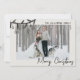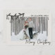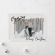 Envíe alegría de vacaciones con esta tarjeta horizontal de Navidades planos. La parte delantera destaca una gran foto en un fondo de color blanco roto o crema para un ambiente vintage o rústico, acentuado por una franja de doodle negro de pino verde y adornos colgados en la esquina superior izquierda, que se solapa ligeramente con la imagen para un aspecto casual dibujado a mano. La parte superior derecha tiene espacio para sus nombres o apellidos y el año en una simple letra manuscrita negra, mientras que la parte inferior derecha muestra "Feliz Navidad" en un estilo de caligrafía de escritura negra. En la parte trasera, hay espacio para añadir una nota de vacaciones y firmar con los nombres de tu familia, o puedes dejarla en blanco para escribir a mano un mensaje personal para un toque más sincero. Disponible como tarjeta impresa o archivo digital, lo que facilita el envío por correo, el uso compartido en línea o la impresión local.