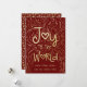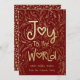 Entregar Alegría a las Tarjetas de Navidades del Mundo - con extravagante obra de arte original de viñas, hojas, ramas y remolinos. Además de la linda alegría para el mundo, la letra a mano se ve tipografía con corazones. Añade tu saludo y mensaje de texto a tu personalizado y envía estas tarjetas de vacaciones a tus familias, amigos y seres queridos. Elija cualquier color de fondo para el diseño mostrado en rojo ladrillo. Moderno, lindo y divertido para las vacaciones! Pintura original de Lulubell Paperie
