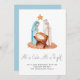 La Escena De La Natividad Es Todo Navidades Tranquilos. Una bella y simple escena de la Natividad y una línea de la noche silenciosa, todo es tranquilo, todo es brillante, en un elegante guión sobre un fondo blanco para un ambiente contemporáneo. Personaliza fácilmente tu saludo y nombres en la parte inferior. El fondo azul de coordinación del otro lado puede cambiarse a otro color si se prefiere a través de la opción personalizar adicional.