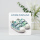 Esta lúdica tarjeta de saludo incluye las palabras "Kahuna pequeña" en un divertido y audaz tipo de letra azul, junto con un lindo ilustracion de zapatillas para niños adornado con un patrón floral hawaiano en suaves tonos verde y azul. El diseño capta un ambiente tropical y alegre, lo que lo hace perfecto para duchas de bebé, cumpleaños de bebé o para dar la bienvenida a un niño en el mundo. Los colores suaves y tranquilizadores y las divertidas imágenes del calzado hacen de esta tarjeta un lugar ideal para los futuros padres o para celebrar el primer hito de un niño. Perfecto para enviar cálidos deseos, felicitaciones o alegres saludos para cualquier ocasión relacionada con una nueva llegada.
