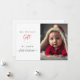 Captura la magia de la primera Navidad de tu bebé con una reconfortante tarjeta fotográfica que captura perfectamente su inocencia y alegría durante este tiempo especial. Nuestras tarjetas personalizadas de foto para bebés de Navidad son más que simples tarjetas de felicitación; son muy apreciadas como keepsakes que apreciarán en los próximos años. En la parte delantera de la tarjeta, puedes agregar sin esfuerzo la foto de tu bebé, haciéndola la la pieza central de este mensaje reconfortante. La palabra "Regalo" está elegantemente escrita en caligrafía roja festiva, mientras que "Primera Navidad" está inscrita en un encantador guión negro, añadiendo un toque de sofisticación al diseño. La parte trasera de la tarjeta proporciona amplio espacio para un mensaje especial a tu bebé, deseándoles una feliz Navidad y expresando tu amor como familia. Este toque personalizado hace que la carta sea aún más significativa y añade una capa de calor al saludo de vacaciones. Nuestro compromiso con la personalización se extiende a todos los elementos de la tarjeta, asegurando que pueda crear un mantenimiento realmente personalizado. Desde la foto de su adorable bebé hasta el más sincero mensaje, cada detalle puede ser adaptado a su gusto. No pierdas esta oportunidad de capturar la magia de la primera Navidad de tu bebé con una tarjeta de foto personalizada. Pida hoy la primera tarjeta de fotos de Navidad de su bebé y haga de esta temporada navideña una que recordar para siempre.