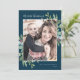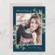 Esta tarjeta de fotos navideña más hermosa y verde para Navidades es la tarjeta perfecta para Navidades simples. El diseño invernal incluye un suave eucalipto de color verde salado y botánicos modernos con brotes de bayas rojas clásicas. Personalice la tarjeta con una foto familiar, su apellido y año.