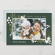 Elegantes tarjetas de fotos botánicas de vacaciones colocan tu frente y centro de fotos horizontales o paisajistas favoritos, acentuados por brotes botánicos verdes, follaje, hojas y lirio blanco de las flores del valle, en un rico fondo verde cazador. Añada el saludo de sus Navidades personalizados (mostrado con "Paz, Amor y Alegría") y la firma de su familia. Una elegante y festiva tarjeta fotográfica de vacaciones que gustará a todos en su lista de Navidades de esta temporada!