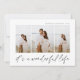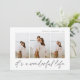 Elegante tarjeta de fotos de vacaciones cuenta con tres fotos verticales en un diseño de collage. "Es una vida maravillosa" aparece debajo de una suave escritura manuscrita negra escrita a mano. Personalice con su nombre y el año en la parte superior. Las tarjetas cambian a un fondo con motivos botánicos.