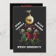 Prepárate para arrasar la temporada navideña con la tarjeta de felicitación más extravagante de la ciudad. Este diseño llamativo presenta a tres lagartos funky vestidos con su mejor atuendo invernal divirtiéndose bajo un adorno navideño dorado. Con la cita juguetona "Mantente cálido, Mantente raro, Mantente groovy", esta tarjeta es una celebración total de la rareza festiva y el encanto de sangre fría.
