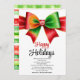 Tarjeta Festiva Large red, green bow and stripes Christmas