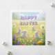 Pretty white Easter bunnies surrounded by spring flowers. An elegant greeting card for your Easter holiday. Beatiful background with colorful nature and flowers with green, pink, purple, yellow, and orange accents. When is Easter? Harry up while it's still time to order digital downloads to email or text to your friends and family!