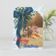 Tarjeta Festiva Lazo azul marino elegante y fotografía de follaje