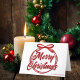 Un guión cursivo moderno y en negrita sobre una hermosa cinta roja y un lazo que dice FELIZ NAVIDAD en tipografía cursiva elegante. Un lazo atado es super tendencia para tarjetas de vacaciones sin foto de 2025. Personalice con el nombre de su familia o negocio en la esquina inferior derecha.
