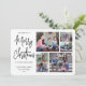 Envíe elegantes saludos alegres y comparta seis de sus fotos favoritas con una tarjeta de vacaciones de collage de fotos personalizado única. Todo el texto de esta plantilla es sencillo de personalizar para incluir cualquier texto, como Felices Fiestas, Saludos de Temporadas, Saludos de Año Nuevo, etc. El mensaje que dice "Te deseamos una Feliz Navidad y un Feliz Año Nuevo" puede cambiarse a letras de canciones diferentes o a cualquier texto que elijas. (IMAGEN PLACEMENT TIP: Una forma sencilla de centrar una foto exactamente como se desea es recortarla antes de subirla al sitio web de Zazzle.) El moderno diseño minimalista en blanco y negro presenta una moderna tipografía de escritura a mano y una única cuadrícula fotográfica con 6 fotos de su elección. A la familia y amigos les encantará mostrar esta elegante tarjeta personalizada.