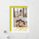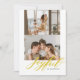 Una tarjeta de vacaciones plana de dos fotos presenta letras de pincel acoloradas de la palabra "Alegre".