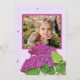 Lilas primaverales hermosas están debajo de tu foto. Las lilas son de un hermoso color rosa morado con hojas verdes brillantes encantadoras. El marco para tu foto coincide con las flores de lila. El fondo general es un suave tono rosa claro. El saludo en la parte posterior dice: Enviándote un cálido saludo de primavera y deseos para una Pascua alegre llena de amor y felicidad. Debajo del saludo hay una plantilla para tu nombre. Todo el texto en esta tarjeta se puede personalizar fácilmente.