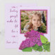 Lilas primaverales hermosas están debajo de tu foto. Las lilas son de un hermoso color rosa morado con hojas verdes brillantes encantadoras. El marco para tu foto coincide con las flores de lila. El fondo general es un suave tono rosa claro. El saludo en la parte posterior dice: Enviándote un cálido saludo primaveral y deseos para una Pascua alegre llena de amor y felicidad. Debajo del saludo hay una plantilla para tu nombre. Todo el texto de esta tarjeta se puede personalizar fácilmente.