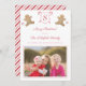 **Crédito de la foto: Fotografía © Storytree Studios, Stanford, CA ** Tarjeta de felicitación familiar divertida y caprichosa de Felices Fiestas. El diseño presenta un hombre de pan de jengibre pintado con acuarela (¿niña? ¿persona?), originalmente pintado a mano por mí, y rayas rojas y blancas de menta, creadas digitalmente por mí.